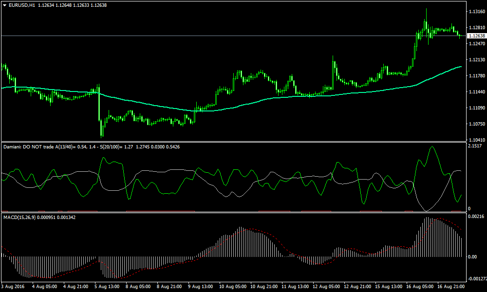 This system uses Damiani indicator that works on 4 hour timeframe. We can refer EMA 100 as our support/resistance line. It is advisable to use in all major currency pairs.