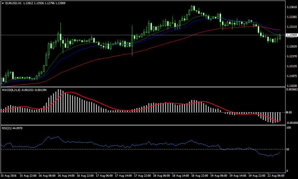 - MACD indicator (8, 21, 8,)