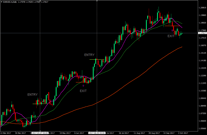Although this strategy is very simple, but it could be very profitable. Its long rallies allow traders to gain more pips on their setups, especially that traders might be able to ride along almost the whole trend. The drawback though is the possible late entries and whipsaws.