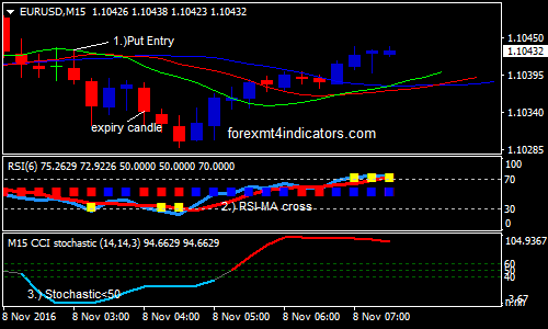 Alligator Binary System is a trend momentum system and the main feature is the RSI-MA and Stochastic Oscillator CCI Indicator. This works on any timeframe and the expiry time would be 3-5 candles.