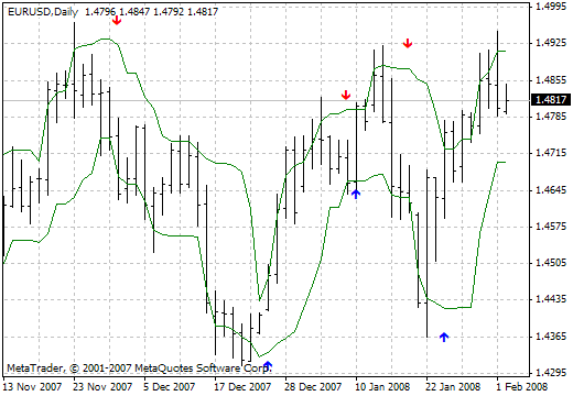 The Arrows – Curves Indicator is a momentum indicator which identifies momentum breakout signals based on price channels. It is based on the concept of identifying momentum breakouts using the breakout of price from a price channel as the trade signal.