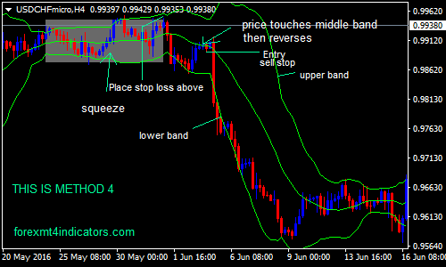- Another way to trade the Bollinger band squeeze is to allow the breakout to happen and then wait for the price to reverse to touch the middle Bollinger band line and enter an order when the price starts to head back in the breakout direction again.