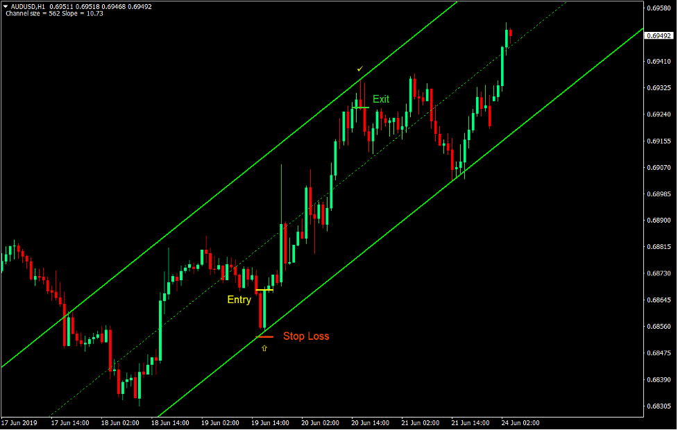 This strategy simplifies the process by automating the process of looking for channels. The indicator plots the channels automatically. All the trader must do is to verify if the channel plotted by the indicator would pass his standards.