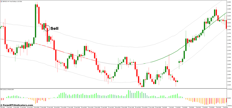- Entry Point: Enter a short trade as the price starts to reverse downward from the upper Extreme TMA Line.