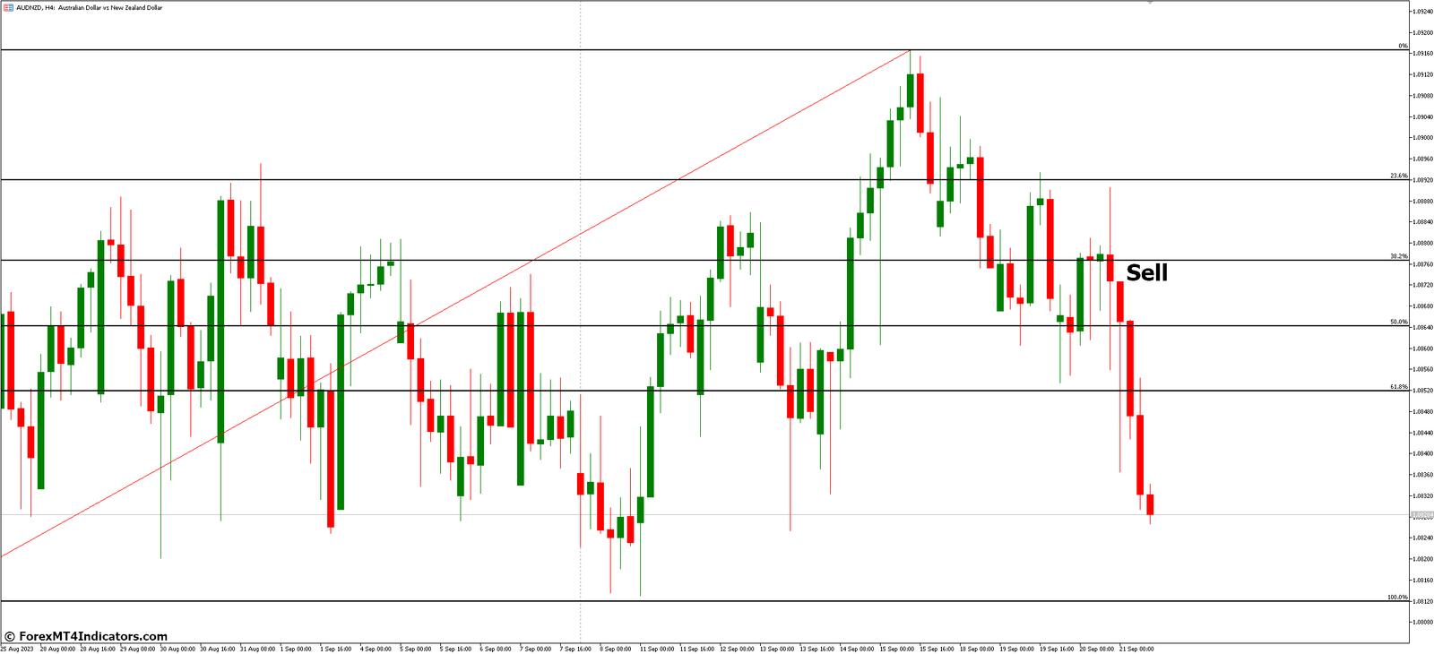 - Enter a sell order when the price confirms a reversal or resistance at the Fibonacci level.