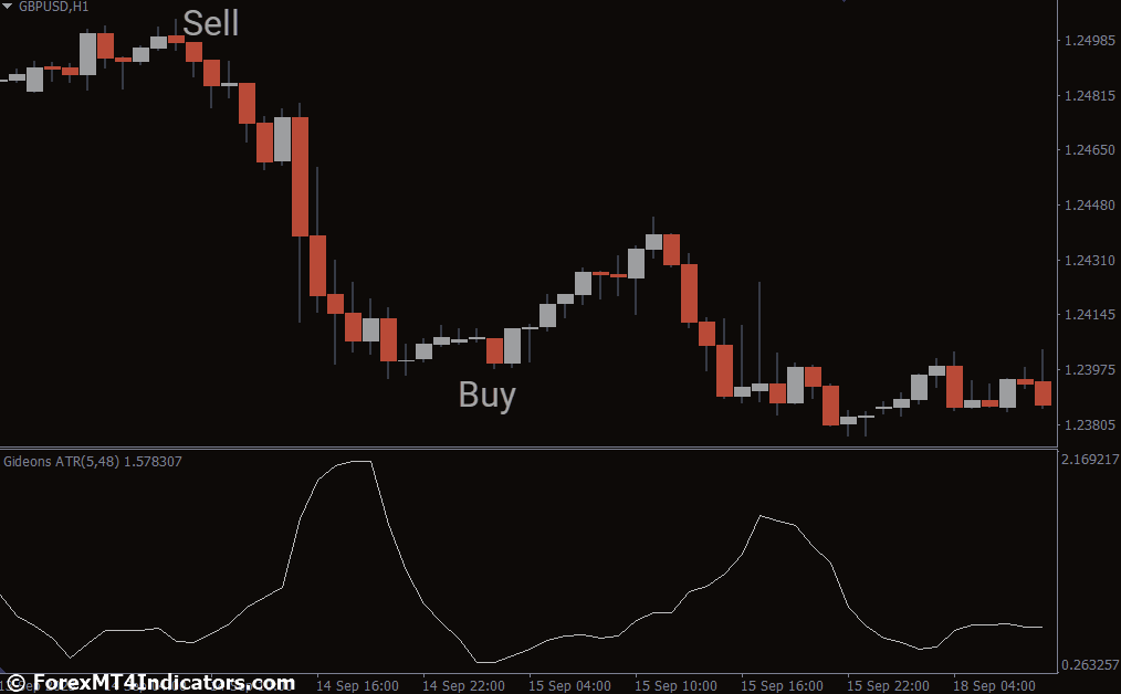 The Gideons ATR Indicator was developed by Gideon, a forex trader, and writer. The indicator is an improved version of the classic ATR indicator to detect volatility.
