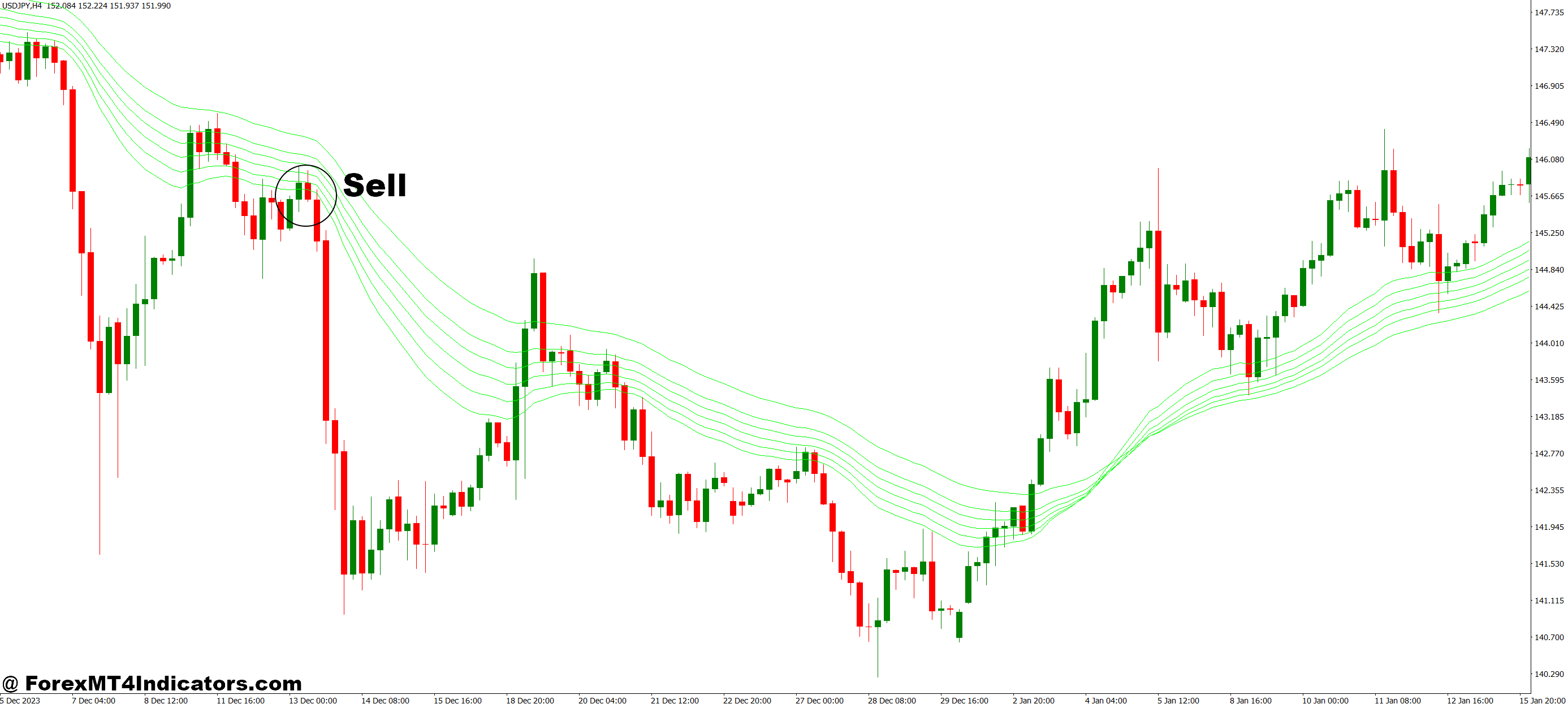- Ensure the short-term EMAs are spreading downward, signaling increasing bearish pressure.
