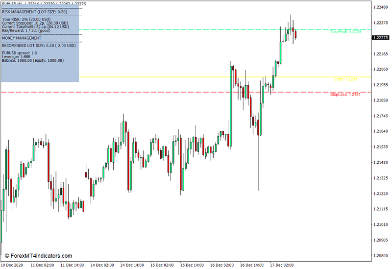 - The indicator would automatically compute and change the money management information that it displays based on the three lines.
