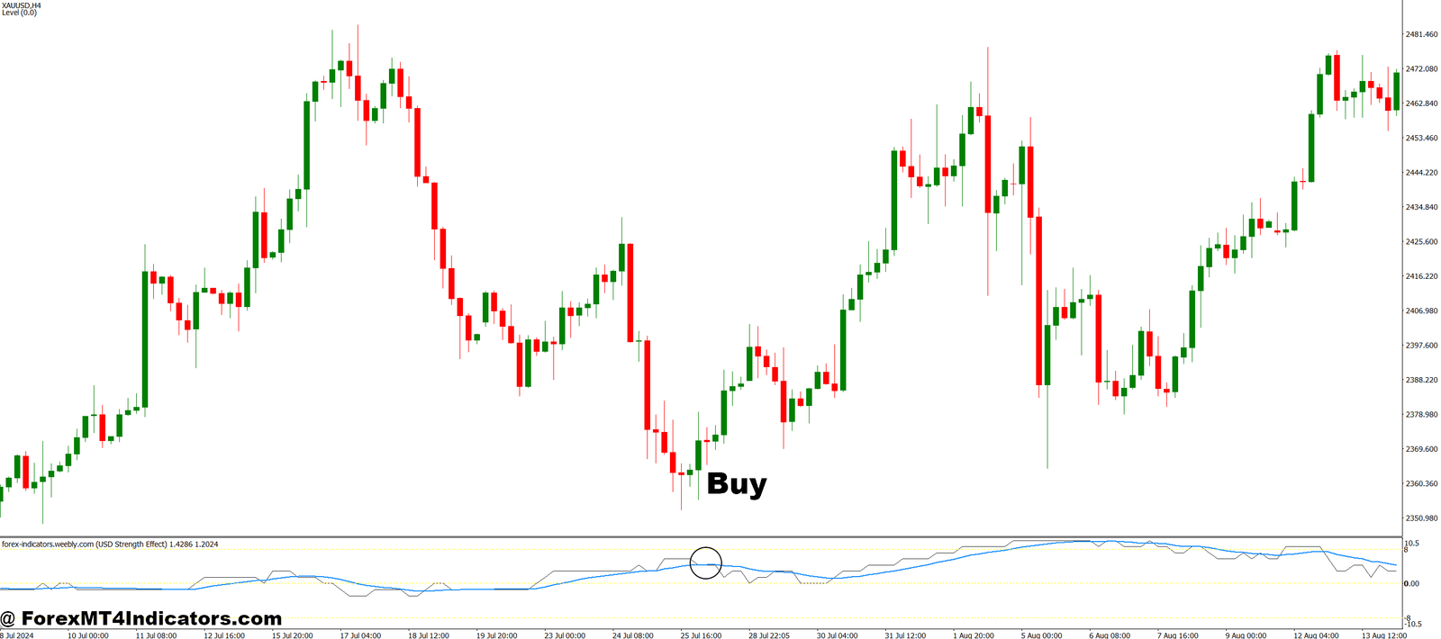 - Wait for the indicator line to move upward, showing increasing bullish strength.