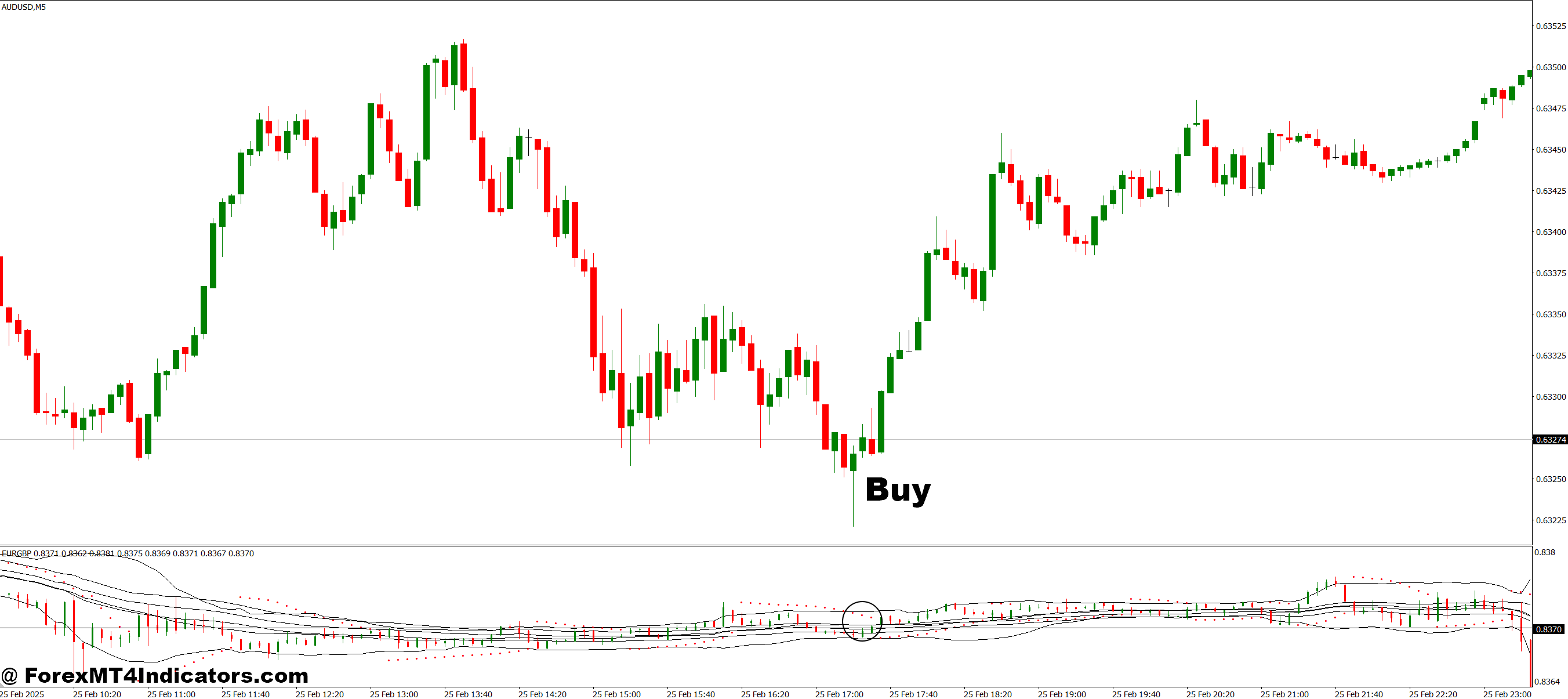 • Enter a buy trade when the price starts moving above a key support level shown on the indicator.
