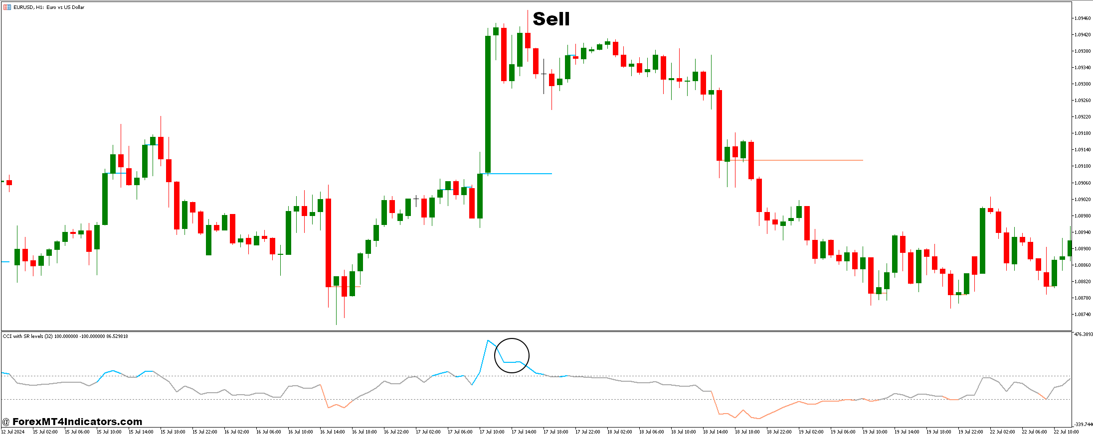 2. Confirm CCI Signal: Ensure the CCI is above +100, indicating overbought conditions.