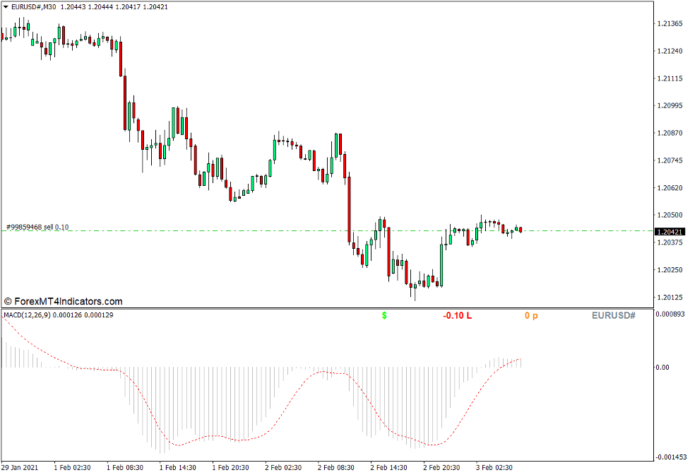 To properly use the Open Positions Indicator, users need to attach a separate indicator with an indicator window on the price chart. In the example above, we used the MACD. Most oscillator type of indicators would work as these types of indicators typically have its own indicator window.