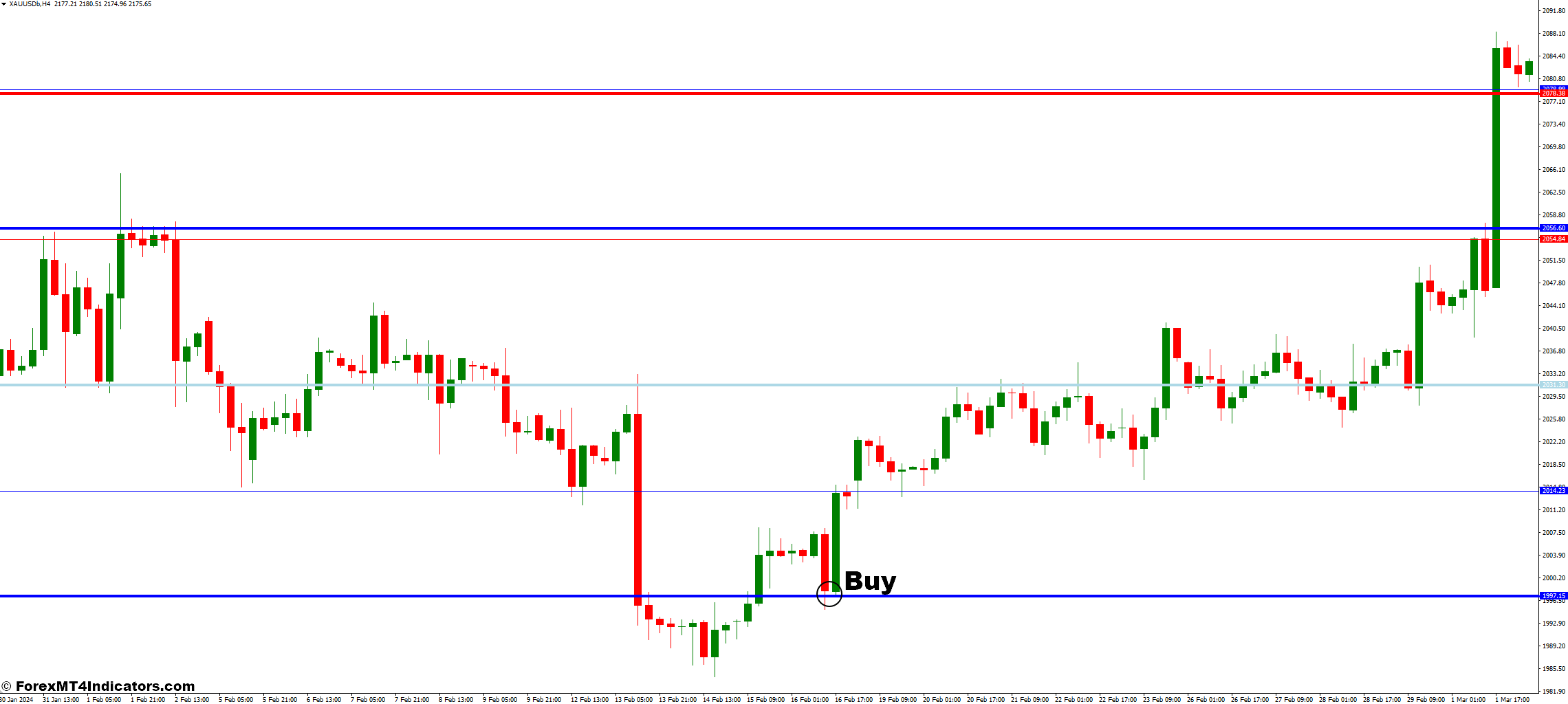 - Entry Point: Enter a long trade (buy) slightly above the support level.