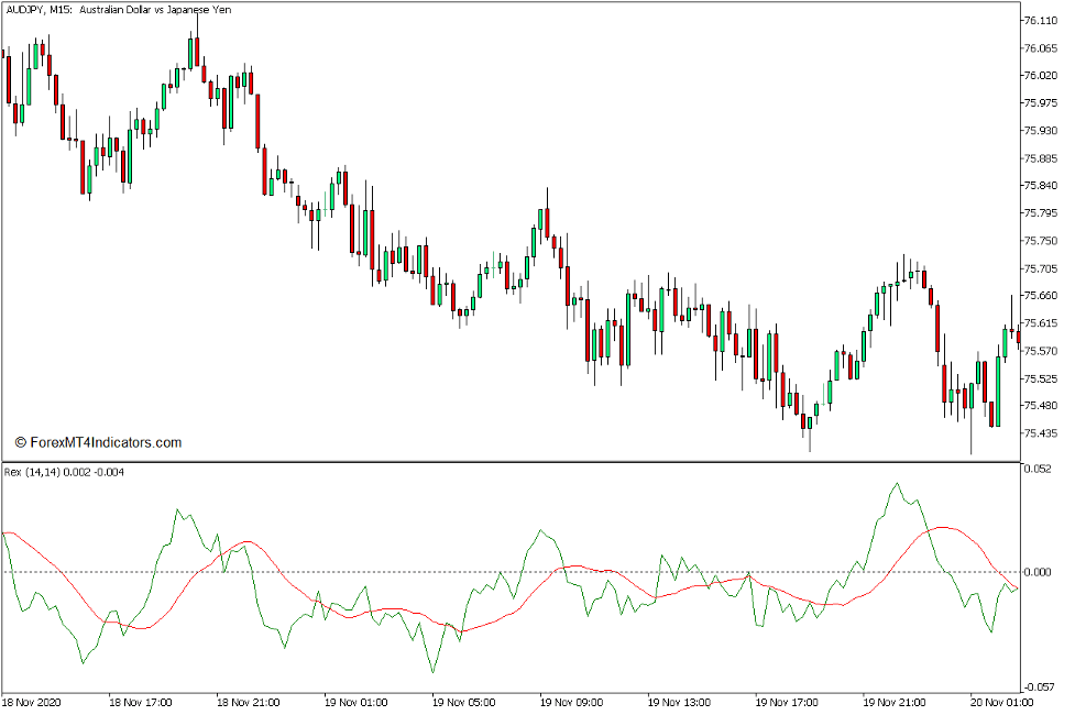 Traders can also use the crossing over of the Rex Line above or below zero as an additional trend or momentum reversal indication.