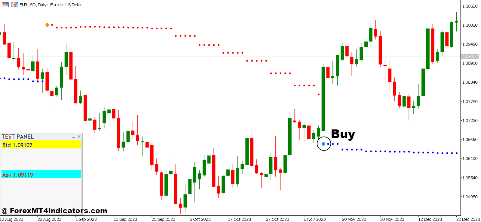 The Trend Arrows Indicator is a pivotal component of the Simple Display Panel and Trend Arrows Forex Trading Strategy, offering visual cues to assist traders in identifying and confirming market trends. These dynamic arrows visually depict trend directionality and momentum shifts, providing clear signals for optimal entry and exit points. Traders rely on the Trend Arrows Indicator to gauge trend strength and continuity, thereby enhancing decision-making and maximizing trading opportunities.