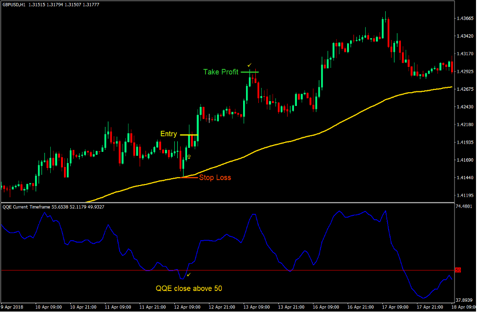 - Enter a buy trade as soon as the QQE goes back above 50