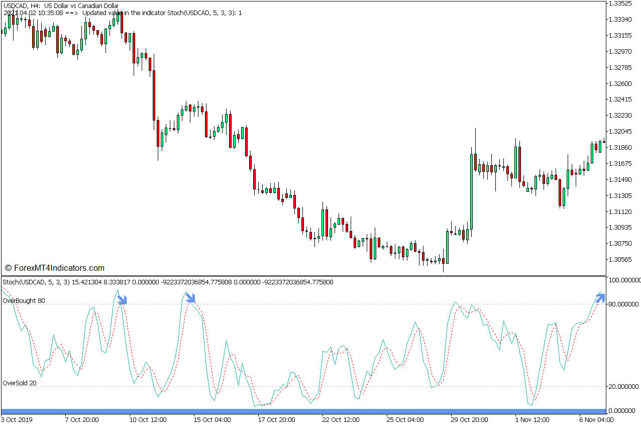 The Engulfing Stochastic indicator modifies the Stochastic Oscillator by adding a mechanism wherein the indicator would indicate a signal whenever an engulfing pattern forms on the price chart while the market is either overbought or oversold.