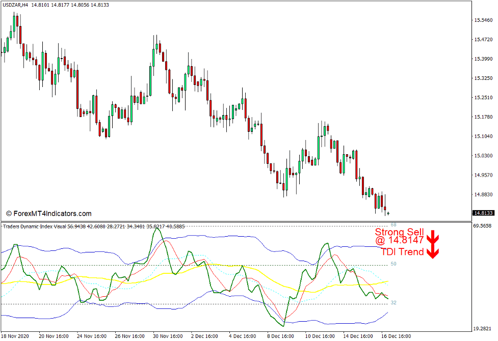 The Traders Dynamic Index (TDI) with Visual Alerts Indicator is a versatile technical indicator which provides multiple information and indications regarding trend direction, momentum, and overbought or oversold market conditions.