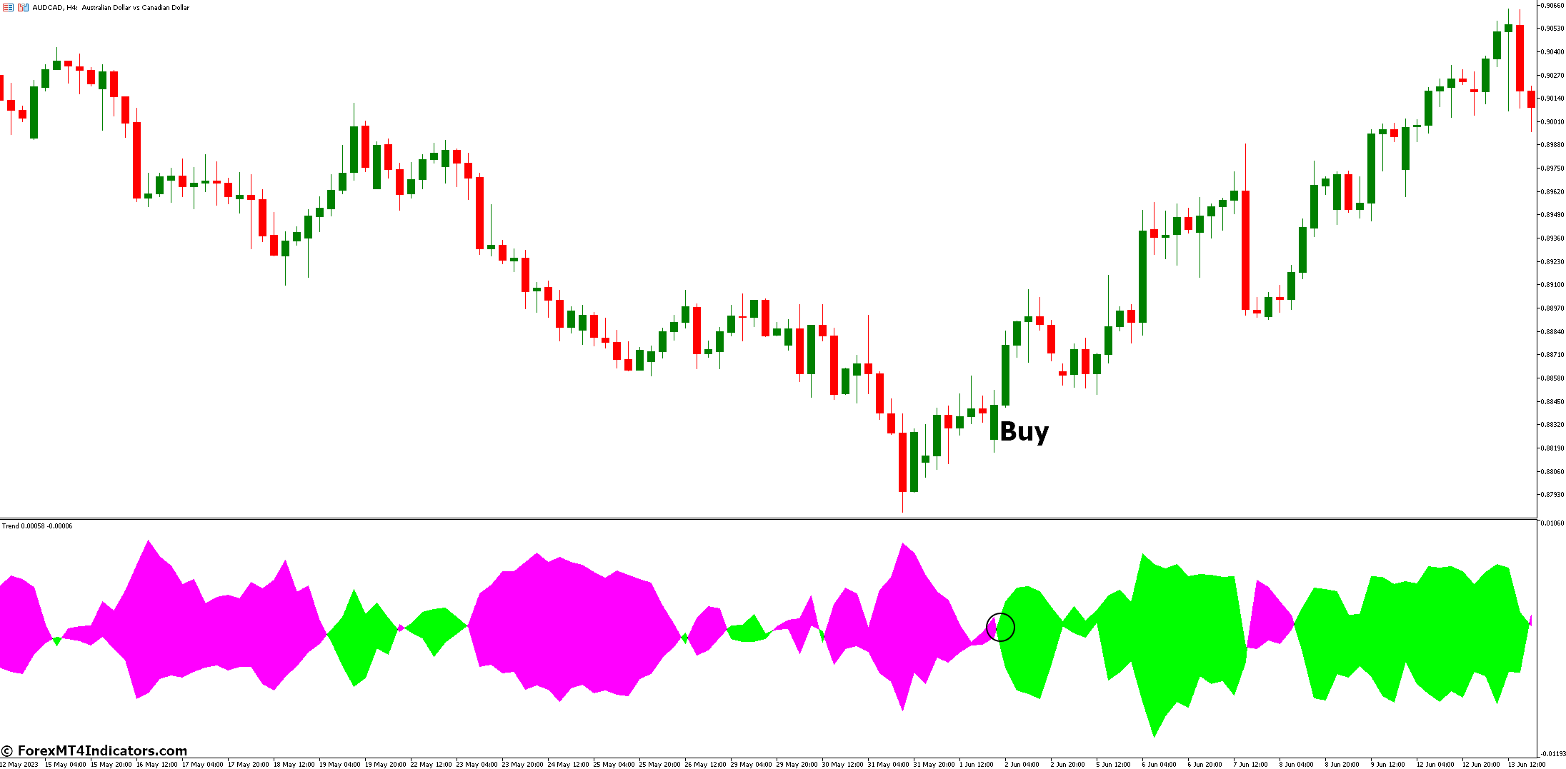 Trend Envelopes Indicator relies on moving averages (MAs) to construct its upper and lower bands. These MAs serve as the foundation, capturing the underlying trend’s essence. By calculating the average price over a specified period, we create a smooth line that filters out noise.