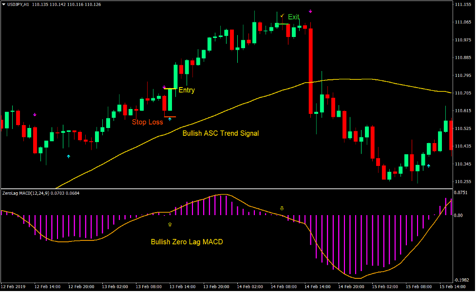 Zero Lag ASC Trend Forex Trading Strategy combines both trend trading and momentum trading. It uses a variation of the widely used Moving Average Convergence and Divergence (MACD) indicator and a moving average as a basis for the trend, while at the same time identifies momentum based on a custom trend indicator.